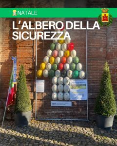 L’opera, collocata nei pressi dell’ingresso del Castello Carrarese, è un albero di Natale realizzato con caschi antinfortunistici montati su una tipica intelaiatura da cantiere: un simbolo forte e immediato che richiama il valore fondamentale della sicurezza sul lavoro.